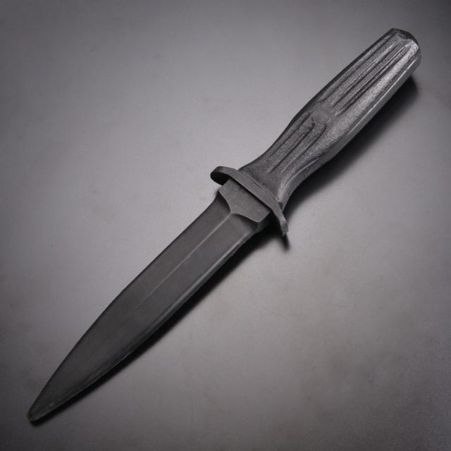 ダガーナイフを模したのこのトレーニングナイフは、耐衝撃性や耐久性に優れたポリウレタン素材で、ブレード部分は若干のしなりがあります。
