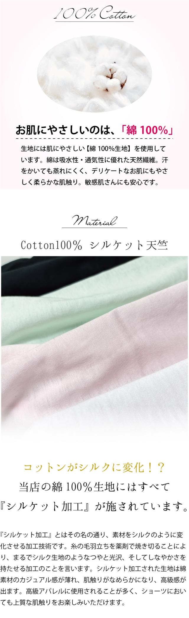 ひもパンとコットン100%生地の良さが見事に合わさりました!生地は肌に優しい天然綿100%でシルケット加工により滑らかな肌触りが特徴。