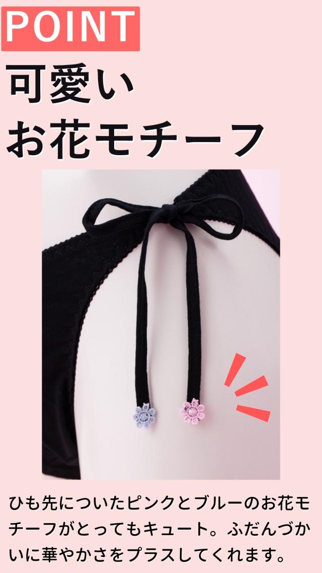 ひも先端のかわいい2色の小花モチーフが超キュート!