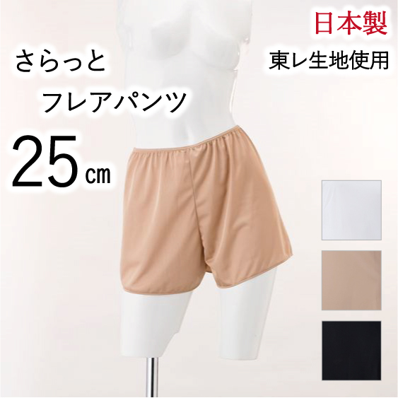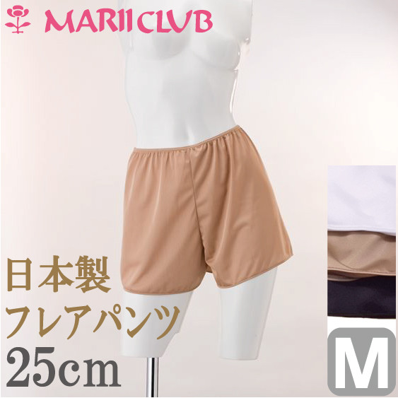 フレアパンツ 25cm シンプル キュロット ペチコート 日本製 インナー 透け防止 静電気防止 レディース 吸汗速乾 東レ 生地 素材 さらさら ベージュ ホワイト ブラック Mサイズ 下着 透けない 黒 白 MARII CLUB マリイクラブ