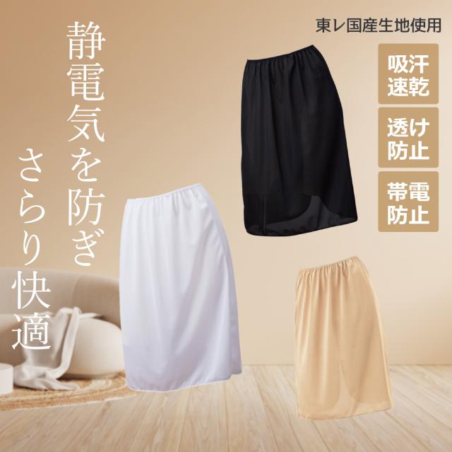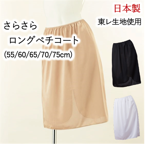 ペチコート ロング 55/60/65/70/75cm 静電気防止 東レさらさら素材 日本製 選べる着丈 レディース 吸汗速乾 透け防止 シンプル ワンピース スカート インナー ロングペチコート ペチパンツ ベージュ ホワイト ブラック Mサイズ 素材 ペチパン 黒 白 マキシ丈 マリイクラブ