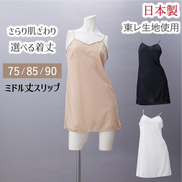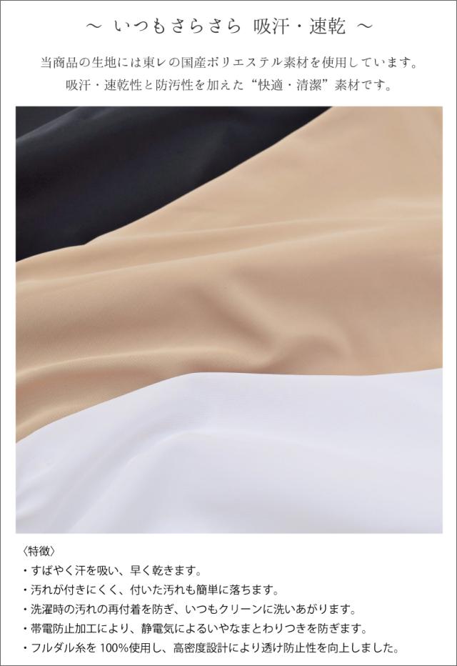 当店のスリップ・ペチコートは全て東レの国産生地を使用しており、それを職人さんが1枚1枚丁寧に手作りで仕上げております。生地は吸汗速乾素材でいつもさらさら、静電気も防止し、優れた防汚性も兼ね備えた「快適・清潔」素材です。肩ひもの長さも調節可能となっております。ワンピースやスカート・パーティードレスのインナーとして着ていただきますと、アウターのまとわりつきや静電気を防ぎ、快適さを実感いただけると思います。是非一度お試しください。(*^-^*)