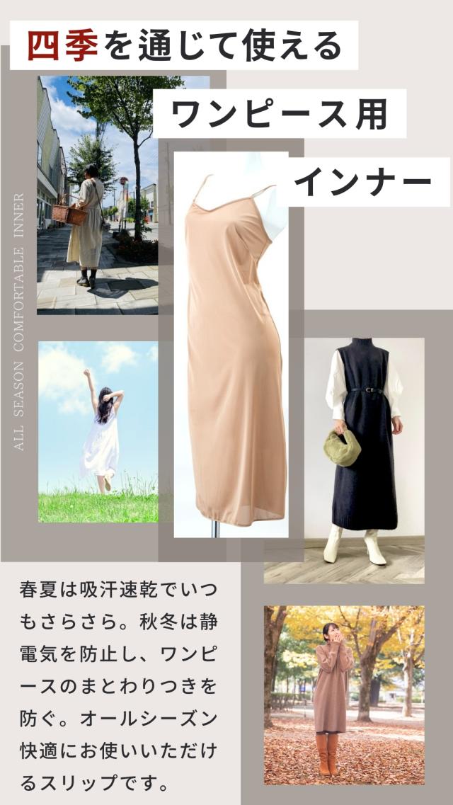普段着のワンピースなどはもちろん、冠婚葬祭、ドレス、さらには浴衣のインナーとしてもお使いいただくことができます。