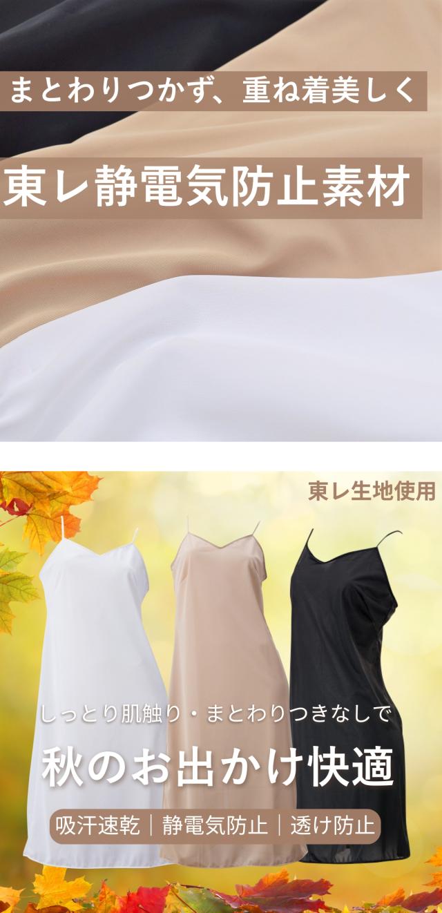 ペチコート ワンピース スリップ 静電気防止 東レ サラサラ 日本製 ロング丈大きいサイズ インナー 吸汗速乾 吸水 秋冬 透け防止 選べる丈 75 85 90 95 100 110cm インナーワンピース レディース ランジェリー ドレス シンプル マキシ丈 ベージュ ホワイト ブラック M L LL