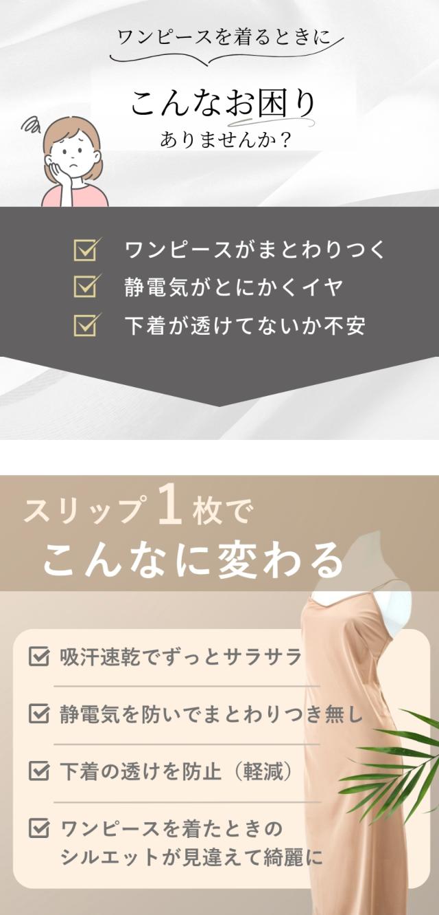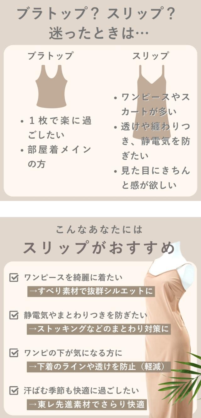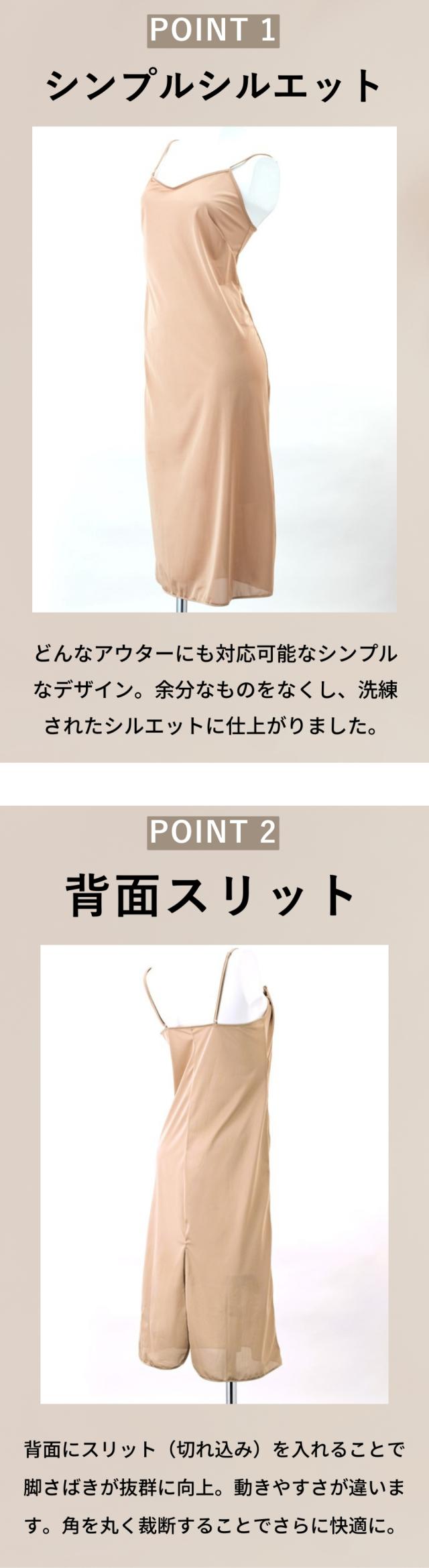 日常の快適さを追求する30代〜の落ち着いた女性に、特に着ていただきたい当店自慢のスリップです。