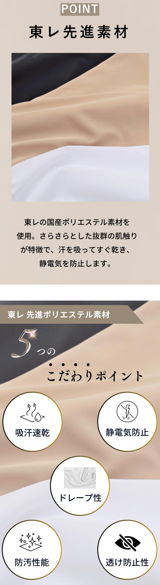 素材には東レの国産ポリエステル素材を使用し、さらりとした心地よい肌触りが特徴。