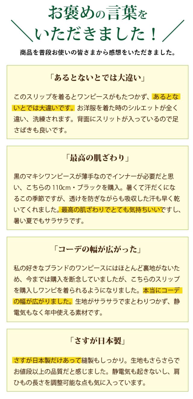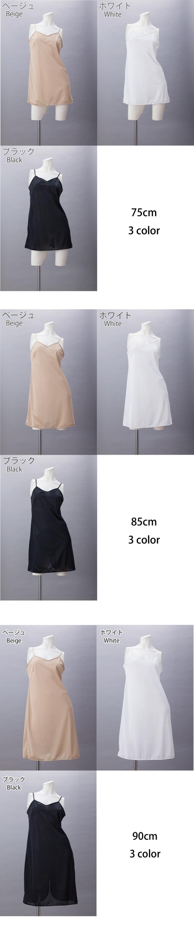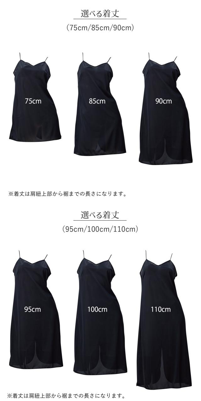 とってもシンプルでどんなシーンにも大活躍の高品質な日本製スリップ。選べるミドル〜ロング丈75/85/90/95/100/110cmです。