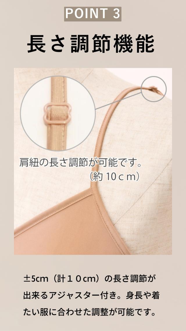 当店のスリップ・ペチコートは全て東レの国産生地を使用しており、それを職人さんが1枚1枚丁寧に手作りで仕上げております。生地は吸汗速乾素材でいつもさらさら、静電気を防止し、優れた防汚性も兼ね備えた「快適・清潔」素材です。肩ひもの長さも調節可能となっております。ワンピースやスカート・パーティードレスのインナーとして着ていただきますと、アウターのまとわりつきや静電気を防ぎ、快適さを実感いただけると思います。是非一度お試しください。