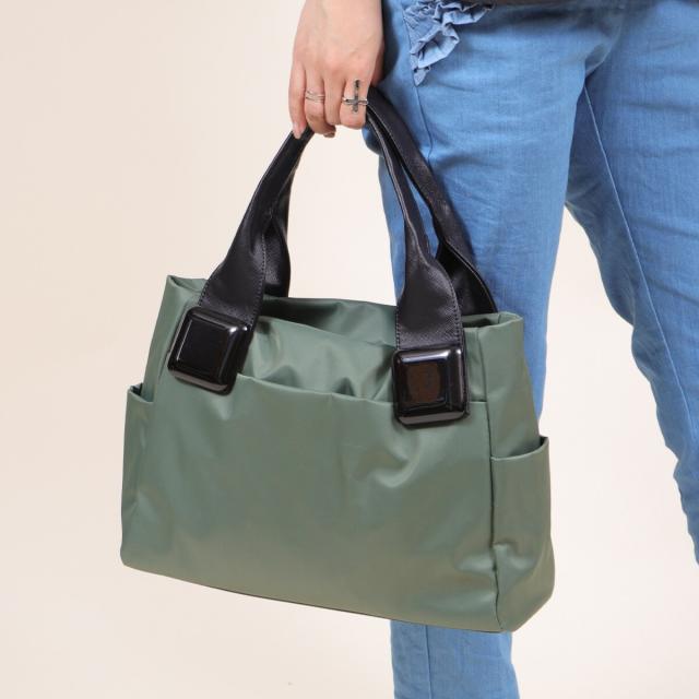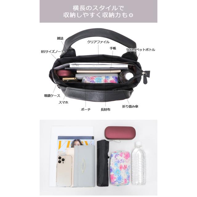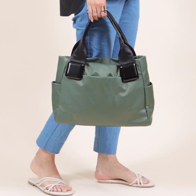 ・ハンドルにフェイクレザーを使用し上品な印象に。