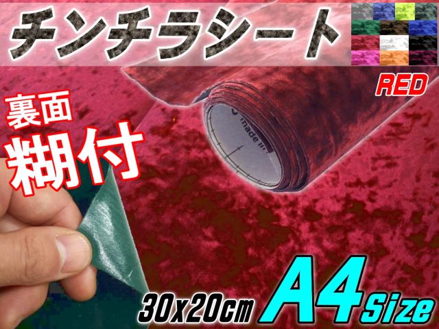 チンチラ (A4) 赤 【商品一覧】幅30cm×20cm 裏面糊付き A4サイズ レッド クラッシュベルベット ベロア モケット 椅子 生地 張り替え トラック 旧車 デコトラ内装 張替 カッティング可能なシート ステッカー シール アンティーク家具の補修 リペア 自作DIYに