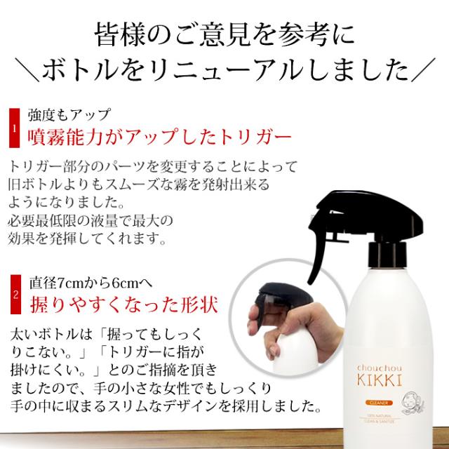 合成界面活性剤、防腐剤不使用で環境にも優しいクリーナー(洗浄液)です。