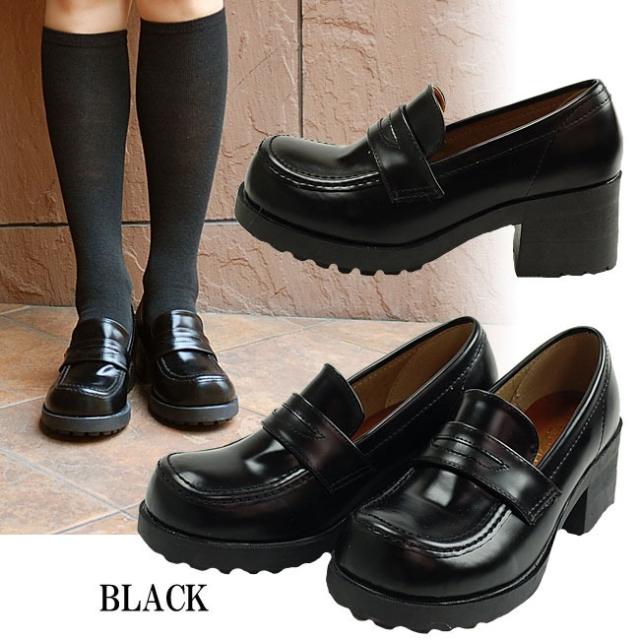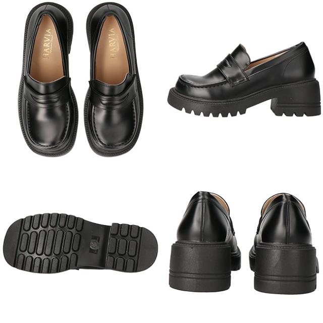 ローファー おでこ 学生 レディース 歩きやすい 疲れない 履きやすい 痛くない 厚底 ヒール 軽量 柔らかい おでこローファー 黒 ブラック おしゃれ かわいい 中学生 高校生 通学 普段履きシューズ 靴 6MK