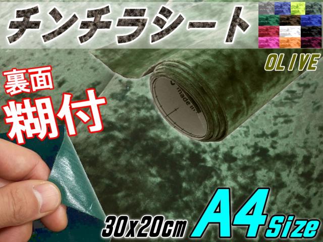 チンチラ (A4) オリーブ 【商品一覧】幅30cm×20cm 裏面糊付き A4サイズ クラッシュベルベット ベロア モケット 椅子 生地 張り替え トラック 旧車 デコトラ内装 張替 カッティング可能なシート ステッカー シール アンティーク家具の補修 リペア 自作DIYに