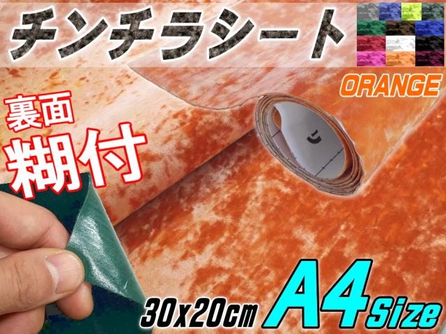 チンチラ (A4) 柿 幅30cm×20cm 裏面糊付き A4サイズ オレンジ クラッシュベルベット ベロア モケット 椅子 生地 張り替え トラック 旧車 デコトラ内装 張替 カッティング可能なシート ステッカー シール アンティーク家具の補修 リペア 自作DIYに