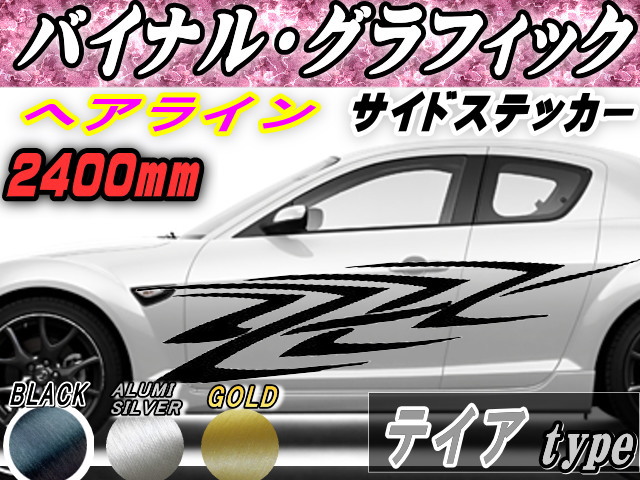 サイドデカール (ヘアライン) テイア 汎用 左右2枚1セット 幅500mm×長さ2400mm (2.4m) 転写シート付属 バイナル グラフィック デコライン ステッカー トライバル チタニウム ブラッシュド アルミ調 ストライプ 自動車 オリジナル