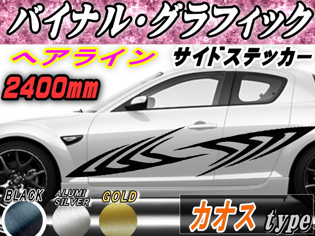 サイドデカール (ヘアライン) カオス 汎用 左右2枚1セット 幅500mm×長さ2400mm (2.4m) 転写シート付属 バイナル グラフィック デコライン ステッカー トライバル チタニウム ブラッシュド アルミ調 ストライプ 自動車 オリジナル