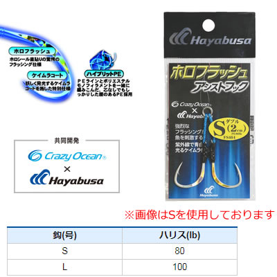 ハヤブサ ホロフラッシュアシストフック ダブル2cm S FS464 (アシストフック)