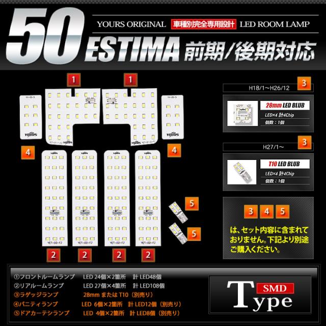 [只今タイムセール開催中]減光調整付き!トヨタ エスティマ 50系 ESTIMA / エスティマ ハイブリッド 20系 専用 LED ルームランプ セット 50エスティマ 前期 後期 [2]