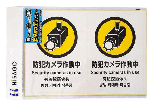 【メール便発送】ヒサゴ ピタロングステッカー A4 防犯カメラ作動中 タテ2面 KLS031