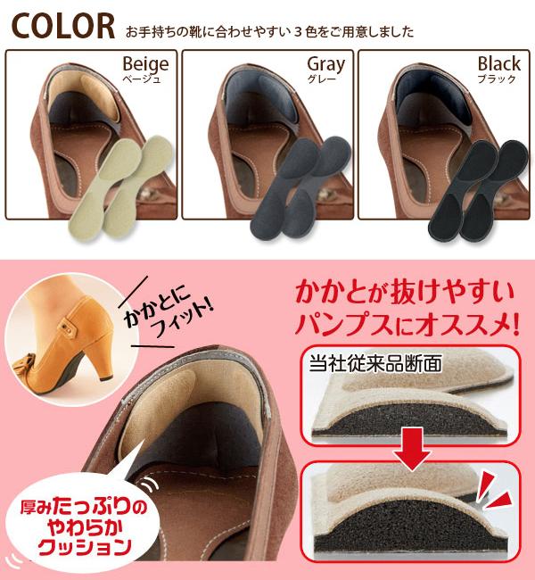 パンプス 滑り止め 靴擦れ 防止 ベージュ グレー やわらかかかとクッション 厚み2倍 (im-0776m) 【メール便送料無料】 すべり止め 靴ずれ防止パッド ベージュ グレー フリーサイズ 抗菌 防臭 ふわふわ ヒールパッド サイズ調節 中敷 ポイント消化