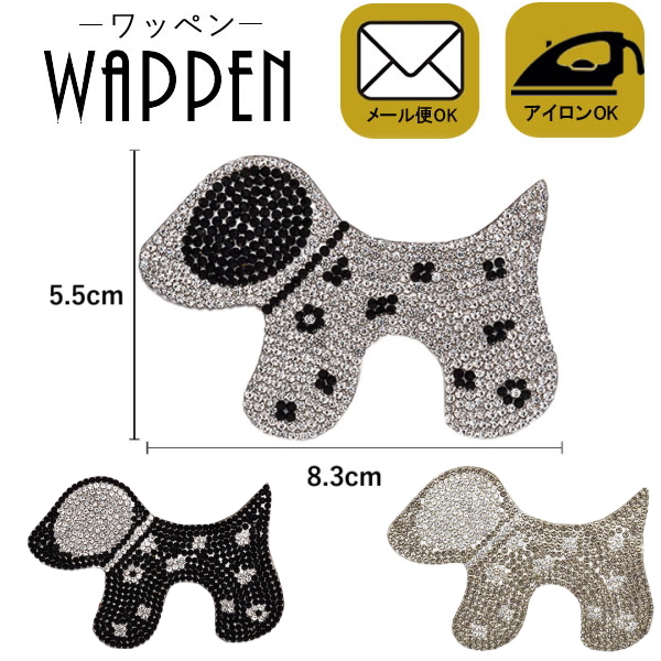 ワッペン 動物 ストーンワッペン アイロン接着 縦5.5cm×横8.3cm 犬 ドッグ アニマルワッペン 選べる3色 アップリケ母の日 プレゼント ギフト