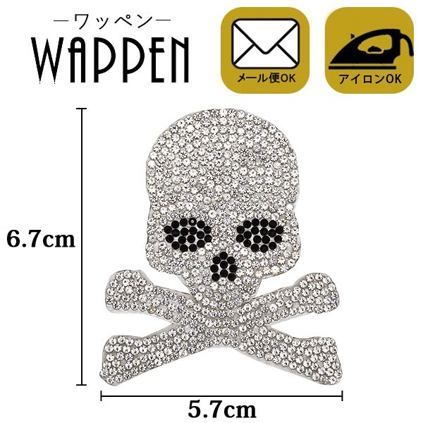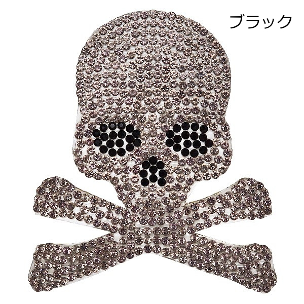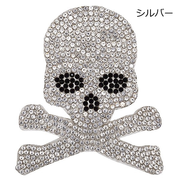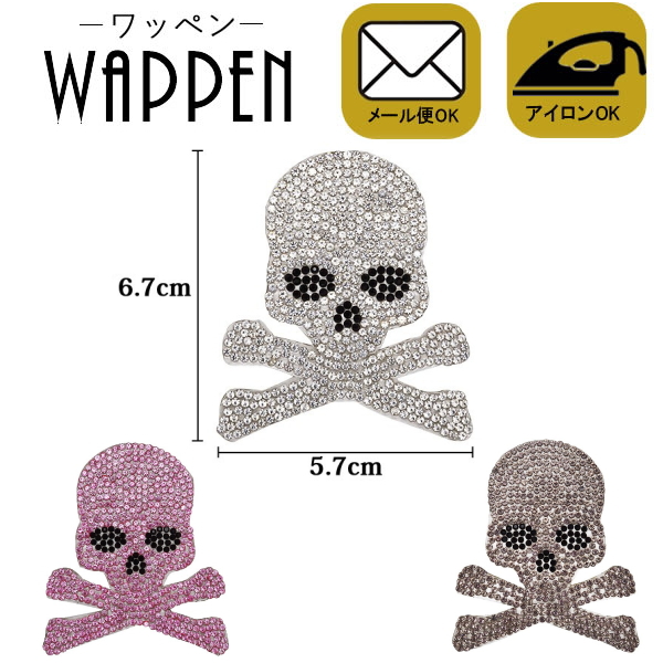 ワッペン 選べる3色 キラキラ ストーンワッペン アイロン接着 縦6.7cm×横5.7cm スカル ドクロ 髑髏 アップリケ母の日 プレゼント ギフト