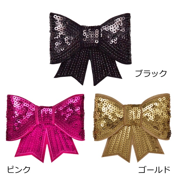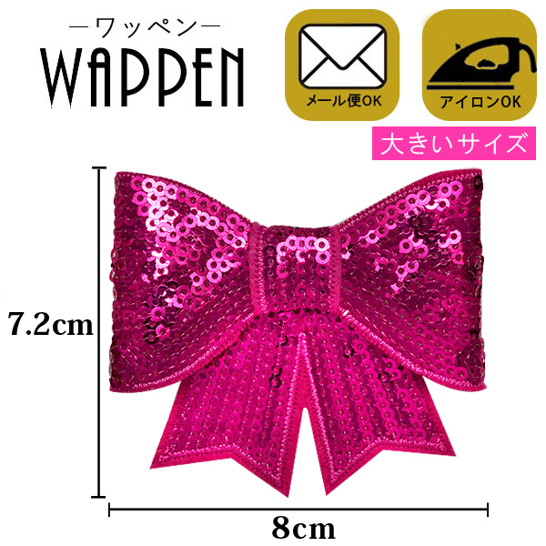 ワッペン アップリケ スパンコールワッペン アイロン接着 手芸 縦7.2cm×横8cm スパンコール リボン(大)母の日 プレゼント ギフト