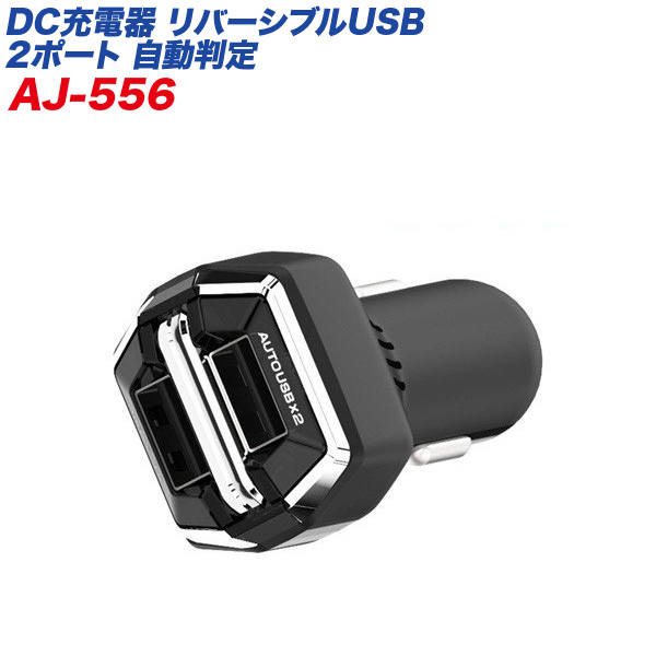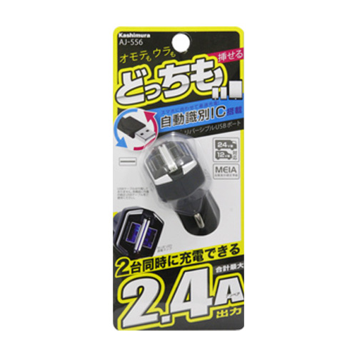 リバーシブルUSBポート×2 2.4A 自動判定?12V/24V車対応 ブラック シガーソケット/カシムラ AJ-556