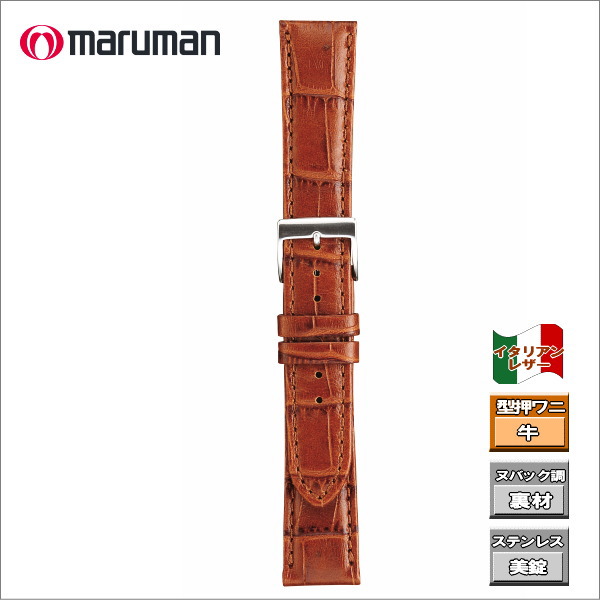 マルマン 時計バンド イタリアンカーフ 型押しワニ 茶 ステッチ入り 時計際幅 18mm 美錠幅 16mm DM便利用で送料無料(代引き不可)