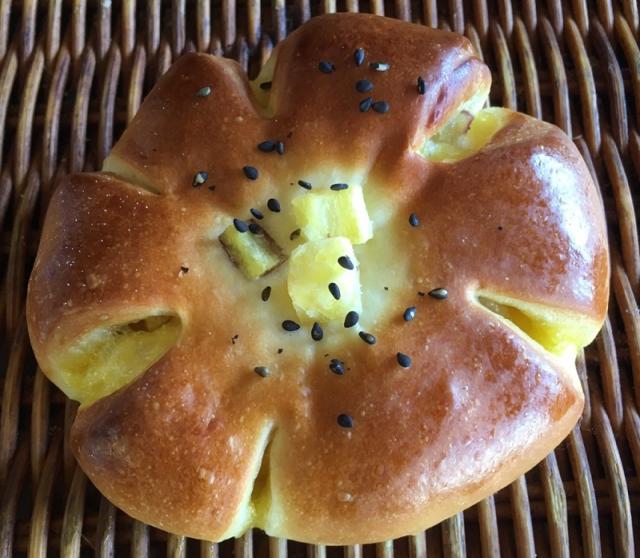原材料:サツマイモ・芋ペースト・強力粉・中力粉・植物性バター・上白糖・卵・濃縮牛乳・塩・黒ゴマ・イースト