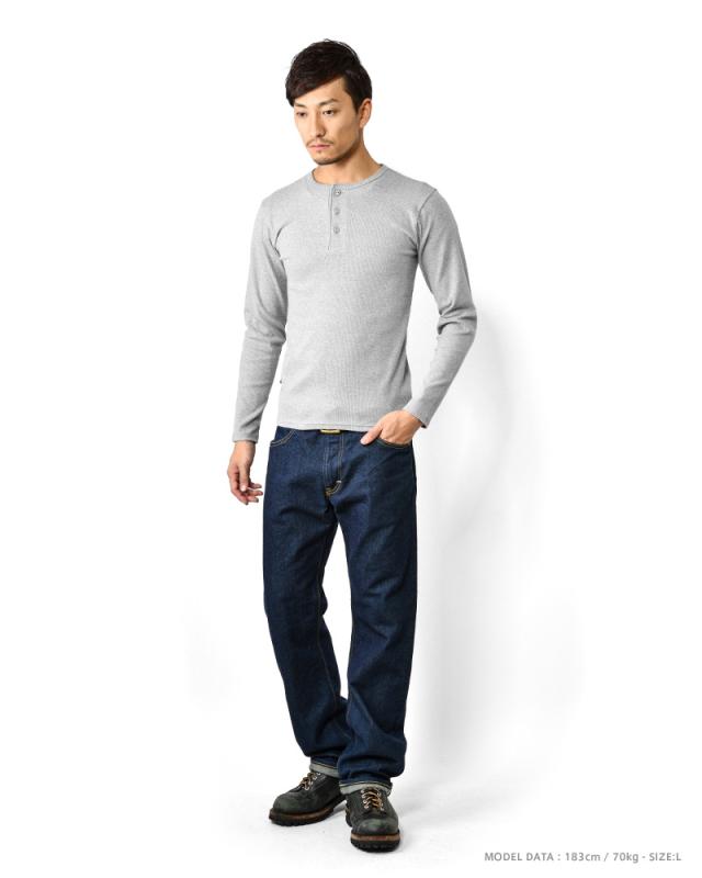 - 長袖のヘンリーネックは一枚で着用しても格好よく春に重宝しそうです。