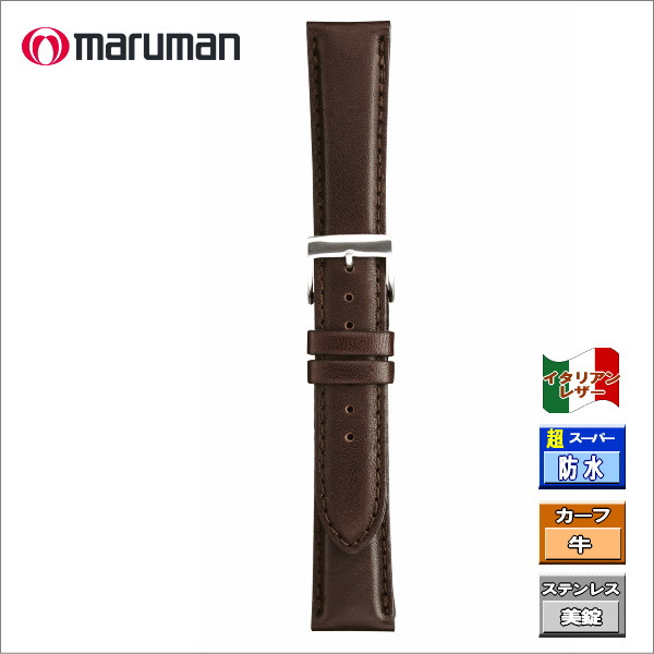 マルマン 時計バンド イタリアンカーフ 濃茶 超スーパー防水加工 時計際幅 19mm 美錠幅 16mm DM便利用で送料無料(代引き不可)