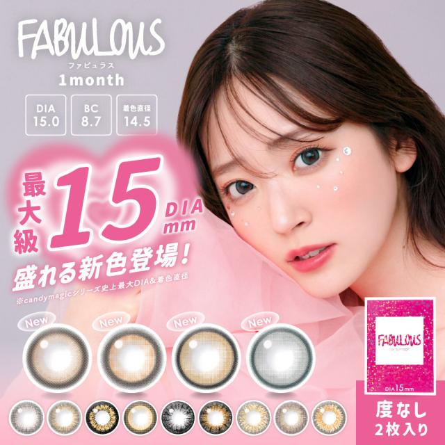 カラコン 1カ月 送料無料(ネコポス) FABULOUS 1month 度なし 1箱2枚入 ファビュラス 15mm デカ目 大きめ DIA15mm ハーフ コスプレ ワンマンス ブラウン グレー 低含水 カラーコンタクト コンタクトレンズ 鈴木愛理