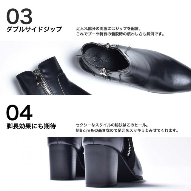 endevice 両サイドジップデザイン ヒールブーツ 本革 牛革 3E クール 高級感 個性的 存在感 モード系 唯一無二 厚底 ヒール 脚長効果 スタイリッシュ 上品 クラシカル ホスト お兄系 V系 夜店 原宿系 新宿 渋谷 靴 くつ クツ シューズ 短靴 ブーツ カジュアルシューズ ブラック ブラックスムース メンズ 男性 紳士 エンデヴァイス ブランド シャープ 洗練されたデザイン 履きやすい デザイン性 エッジ 重厚 EEE 合成素材 両サイドジップ エンデバイス 若者 ファッション おしゃれ オシャレ 地雷系 ホストシューズ バンドマン ヴィジュアル系 モテ ビジュアル 格好いい 高ヒール スタイルUP スタイルアップ デート セクシー カジュアル シンプル ナチュラル フォーマル モード マニッシュ 会社 仕事用 職場用 通勤 出張 営業 就職 ドレス お呼ばれ 結婚式 二次会 成人式 入学式 発表会 披露宴 冠婚葬祭 新郎 小さいサイズ 大きいサイズ 定番 人気 オシャレ おしゃれ お洒落 ファッション 流行 トレンド 20代 30代 40代 50代 60代 春 夏 秋 冬 春夏 秋冬 靴 くつ クツ シューズ ブーツ カジュアルシューズ クロ くろ 黒 BLACK black Black