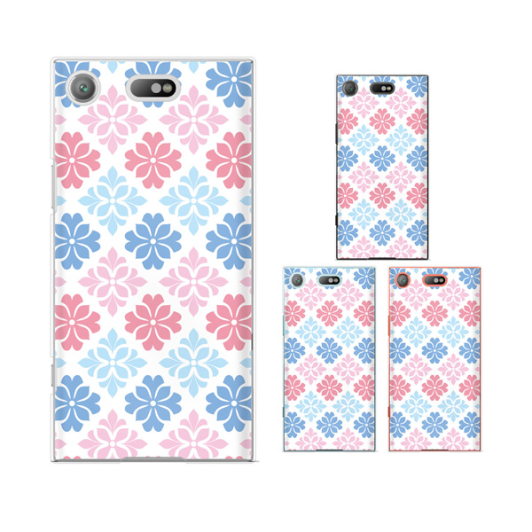 docomo Xperia XZ1 Compact SO-02K (純正卓上充電対応) スマホ ケース ハード カバー パターン22 花 ピンク/水色