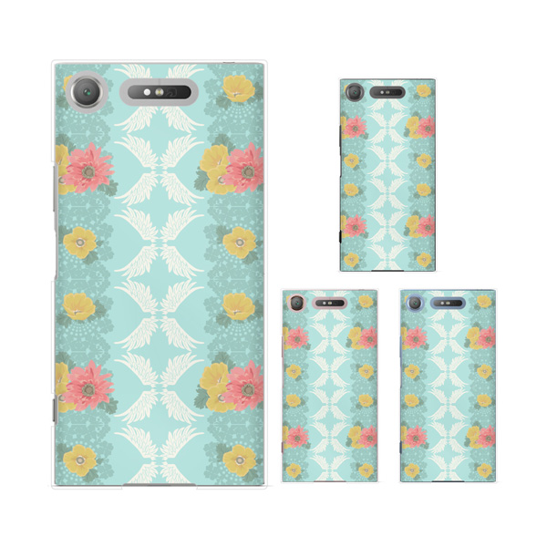 Xperia XZ1 (docomo SO-01K / au SOV36 / SoftBank 701SO) (純正卓上充電対応) スマホ ケース カバー 花柄34 羽 水色