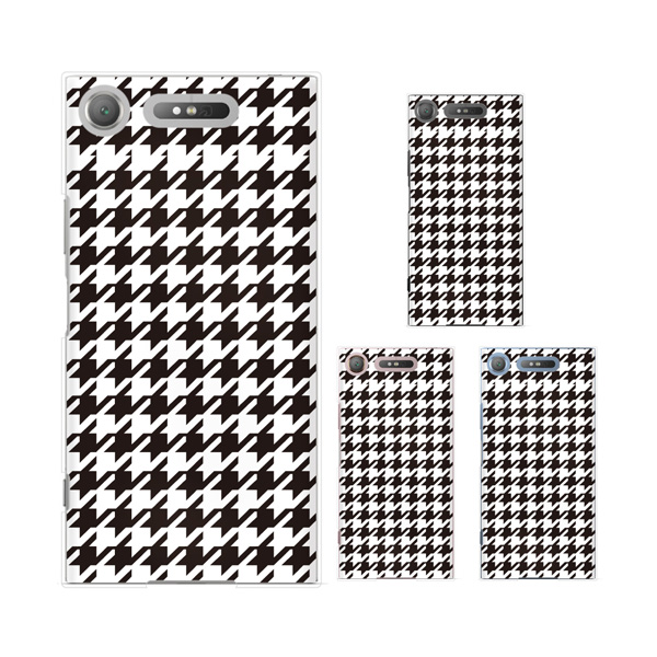 Xperia XZ1 (docomo SO-01K / au SOV36 / SoftBank 701SO) (純正卓上充電対応) スマホ ケース カバー 千鳥柄2 白黒