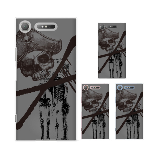 Xperia XZ1 (docomo SO-01K / au SOV36 / SoftBank 701SO) (純正卓上充電対応) スマホ ケース カバー スカル6 海賊 黒 グレー
