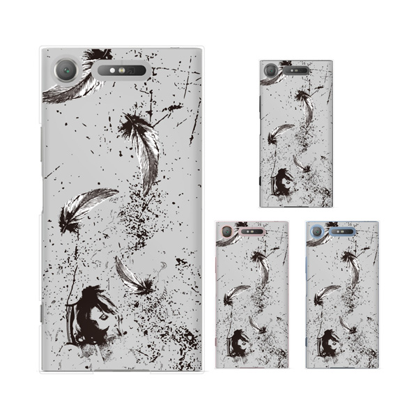 Xperia XZ1 (docomo SO-01K / au SOV36 / SoftBank 701SO) (純正卓上充電対応) スマホ ケース カバー 羽1 黒/灰色