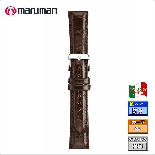 マルマン 時計バンド イタリアンカーフ 栗茶 スーパー防水加工 時計際幅 18mm 美錠幅 16mm DM便利用で送料無料(代引き不可)
