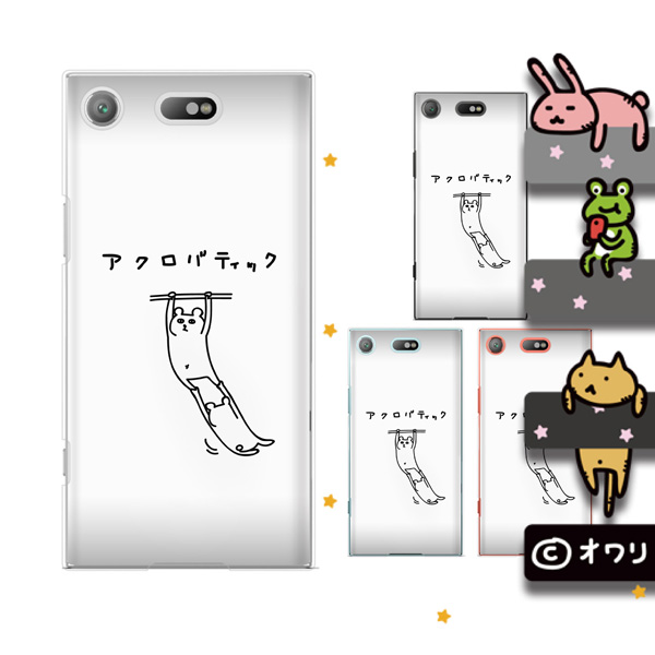 docomo Xperia XZ1 Compact SO-02K (純正卓上充電対応) スマホ ケース カバー オワリ 「アクロバティックなクマ」 ホワイト