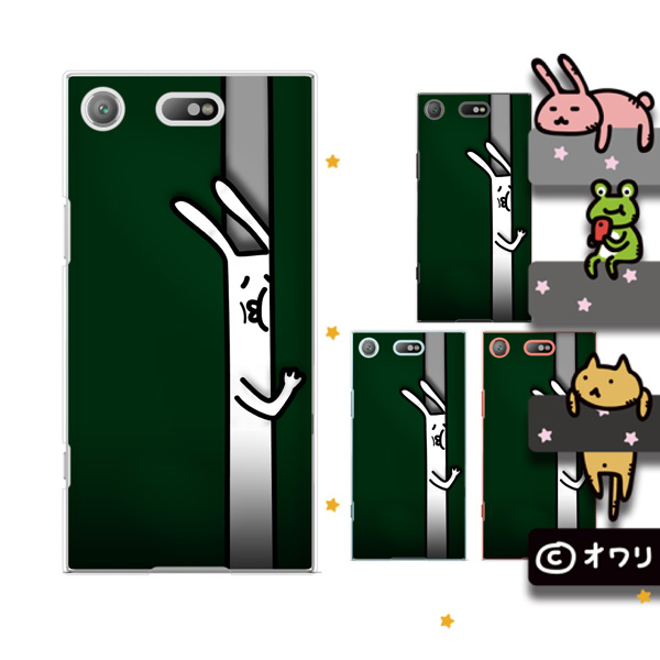 docomo Xperia XZ1 Compact SO-02K (純正卓上充電対応) スマホ ケース カバー オワリ 「はさまれたウサギ」 ブラック