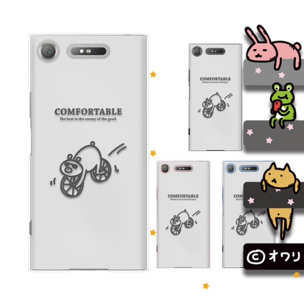 Xperia XZ1 (docomo SO-01K / au SOV36 / SoftBank 701SO) スマホ ケース カバー オワリ 「クマの自転車」 ホワイト