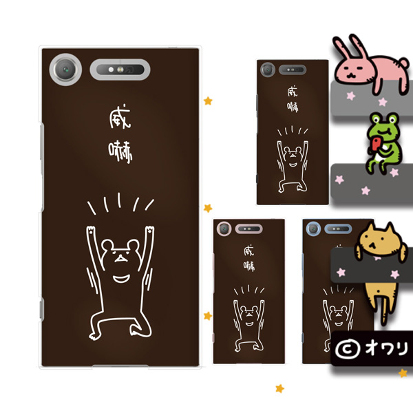 Xperia XZ1 (docomo SO-01K / au SOV36 / SoftBank 701SO) スマホ ケース カバー オワリ 「威嚇をするクマ」 ブラウン