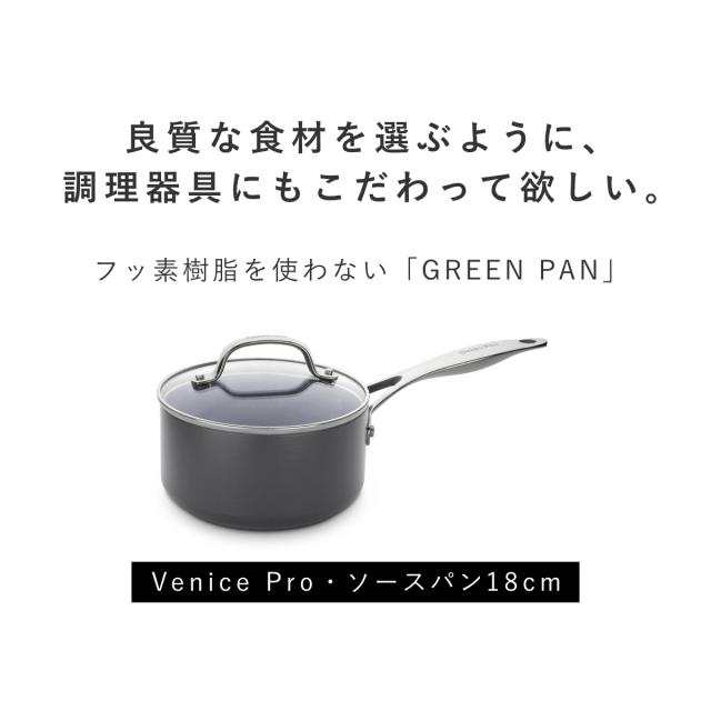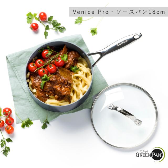 GREEN PAN 片手鍋 18cm IH対応 ガラス蓋付き ヴェニスプロ ソースパン ( ガス火対応 グリーンパン 小鍋 片手なべ 小ぶり ガラス蓋 軽い 18センチ アルミ製 マグニート加工 ノンスティック加工 軽量 おしゃれ )