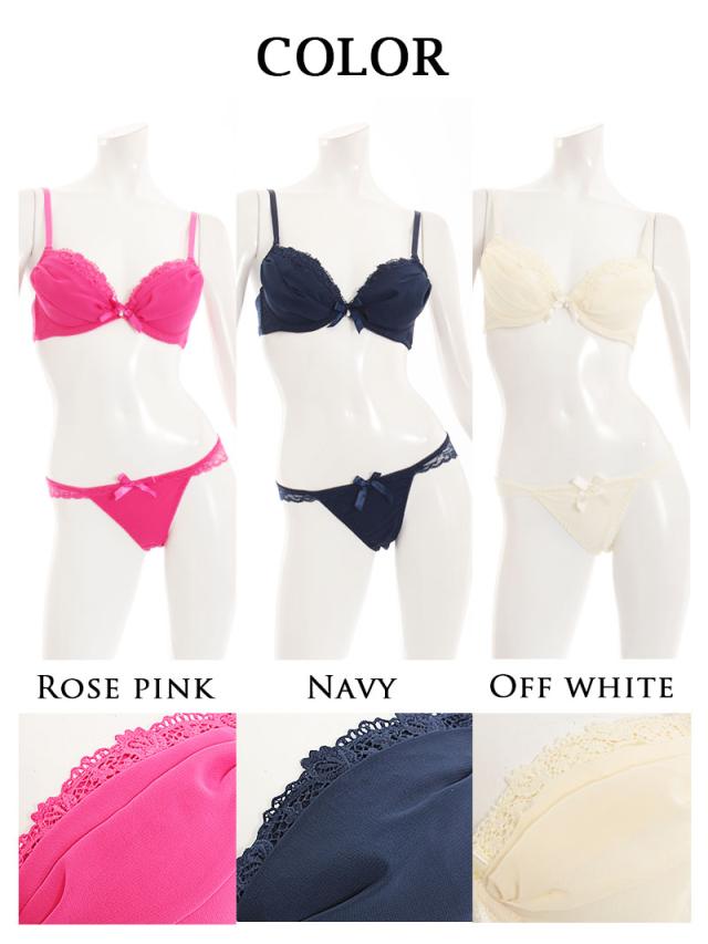 ☆単色でシンプルなデザインだけどレースのパイピングが大人の色気を醸し出してくれるブラ&ショーツセット♪