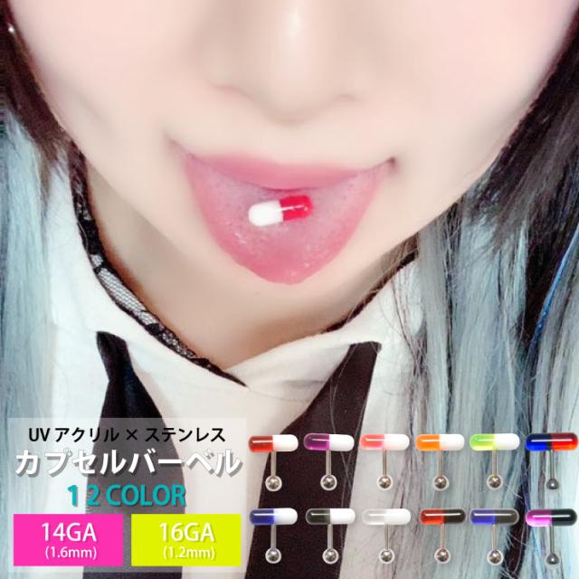 シャフトの長さが選べる!カプセルUVアクリルバーベル14G(1.6mm)!