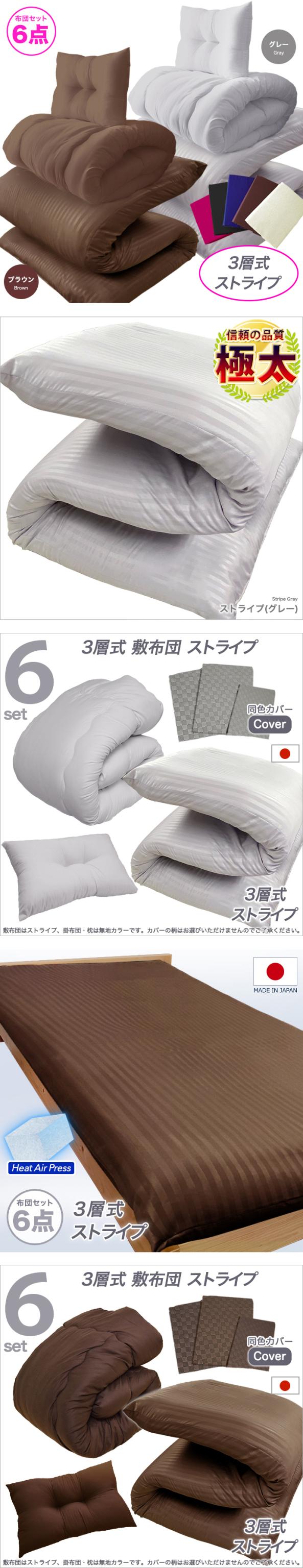 ※ストライプを選択した場合、敷布団はストライプですが、掛布団と枕は無地になります。