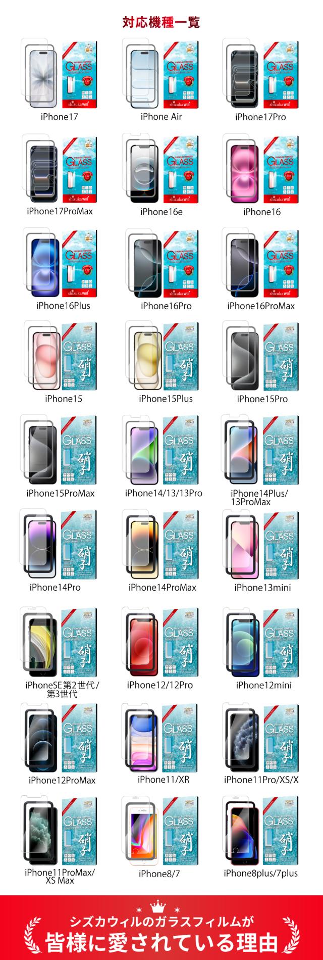 iPhone17 ガラスフィルム iPhone16e フィルム iPhone16 iPhone15 保護フィルム iPhone14 iPhone13 pro max iPhone SE 第3世代 第2世代 iPhone12 mini iPhone11 XR XS 8 Plus iPhone Air 17 17pro 17promax 16e 16pro 画面保護フィルム シズカウィル