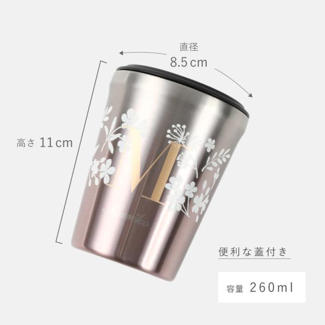 タンブラー 蓋付き 名入れ プレゼント 260ml イニシャルサーモタンブラー フラフィベール 保冷 保温 おしゃれ ステンレス ギフト 女性 贈り物 誕生日 卒業 入学 入社 周年記念 おしゃれ コーヒー 還暦 古希 【返品不可】
